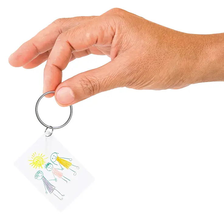Mit diesem originellen Bausatz für einen personalisierten Schlüsselanhänger können Sie die Zeichnungen Ihrer Kinder immer bei sich tragen.