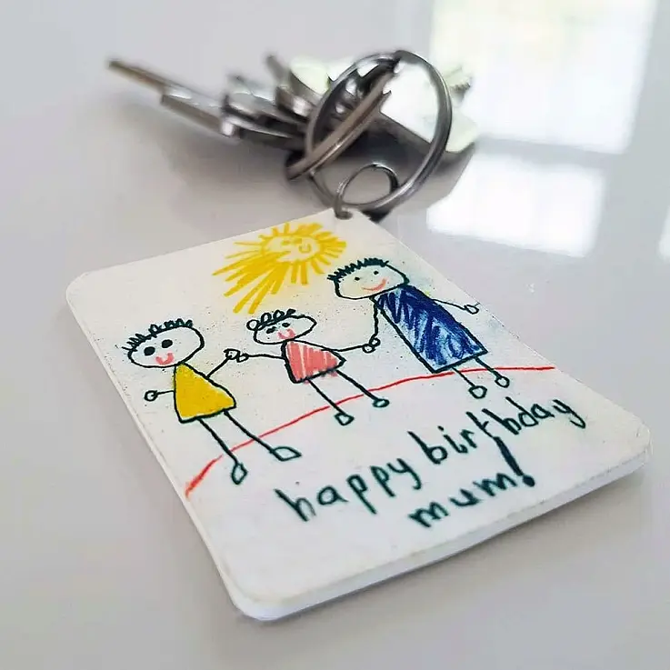 Ein originelles und schönes Geschenk zum Vatertag, Muttertag, für Großeltern, Tanten und Onkel... die Kinder werden sich freuen, wenn ihre Zeichnungen zu Ihrem Lieblingsschlüsselanhänger werden.