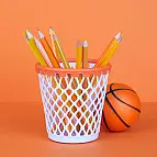 Stecken Sie Ihre Stifte, Bleistifte und Radiergummis in diesen originellen Stifthalter in Form eines Basketballkorbs.