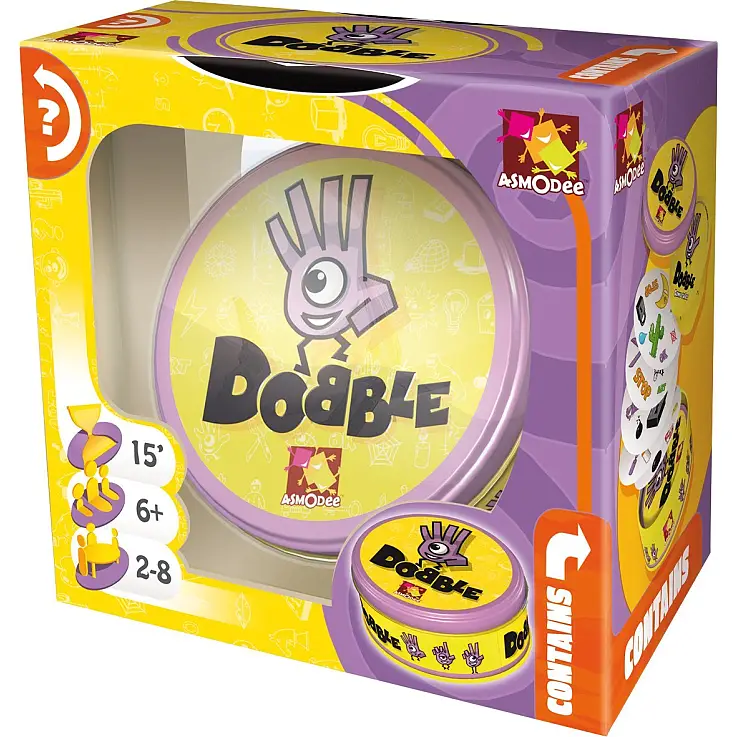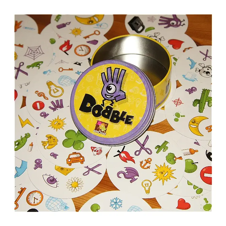 Mit dem Kartenspiel "Dobble" können Sie bis zu fünf verschiedene Partien spielen. Suchen Sie das gleiche Symbol auf zwei Karten, sagen Sie es laut und nehmen Sie eine Karte oder lassen Sie sie liegen, je nach den Regeln des Minispiels, das Sie gerade spielen. Testen Sie Ihr Reaktionsvermögen und ketten Sie alle Minispiele in einer ausgelassenen Atmosphäre aneinander.