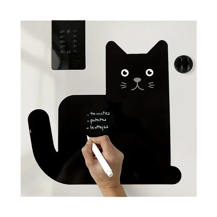 Magnetische Tafel für den Kühlschrank mit einem schwarzen Kätzchen. Perfekt, um den Wochenplan, die Einkaufsliste, Hausarbeiten oder Liebesbotschaften zu notieren.