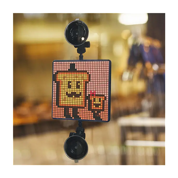 Laden Sie die kostenlose Divoom-App herunter, die mit iOS- und Android-Geräten kompatibel ist, stellen Sie eine Bluetooth-Verbindung her und schon können Sie alle Funktionen nutzen. In der vollständigen Bedienungsanleitung in englischer Sprache erfahren Sie, wie Sie das Gerät ganz einfach in Betrieb nehmen können. Sie können es an die Fenster Ihres Autos, an die Fenster Ihres Hauses oder Ihres Unternehmens, an die Wand oder auf einen Tisch hängen, dank der mitgelieferten Halterungen.