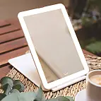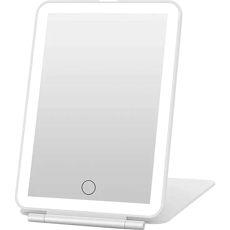 Er verfügt über eine Schutzabdeckung, die sich von 90° auf 75° ausklappen lässt und so zu einem Ständer wird, mit dem Sie die Hände frei haben, um Ihr Make-up ganz bequem aufzutragen.