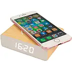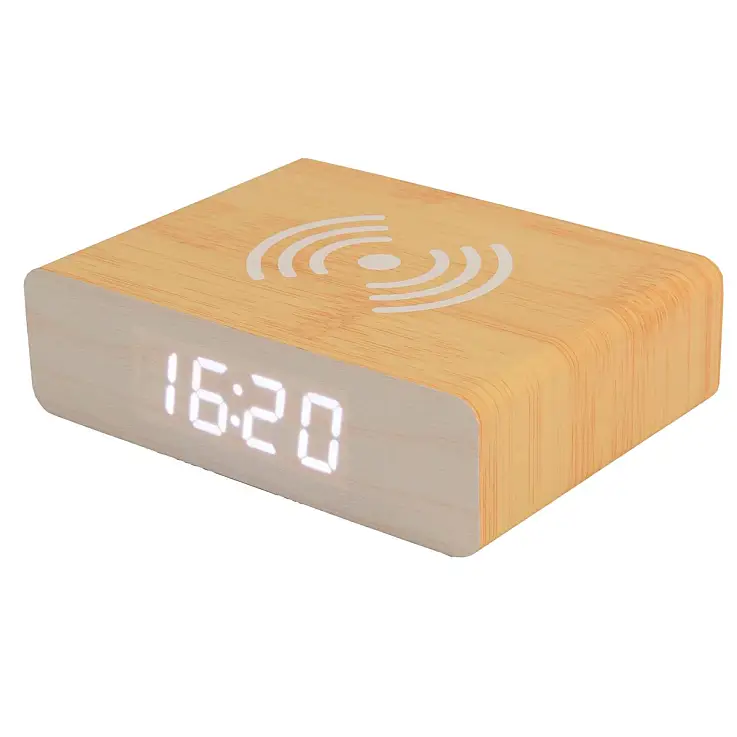 - Ein Wecker mit kabellosem Ladegerät, mit dem Sie den Akku Ihres Mobiltelefons kabellos aufladen können.